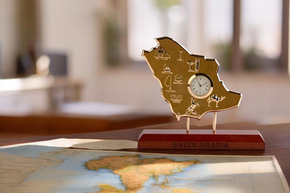 ساعة ديكور بتصميم خريطة المملكة العربية السعودية، يوفرها لك متجر الطريقة السعودية بجودة عالية وأسعار في متناولك.
