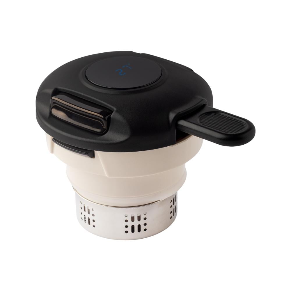 - الغطاء سهل الفتح يمكن فتحه بلمسة واحدة، كما إنها مزودة بشاشة تعمل باللمس أيضا لمعرفة درجة حرارة المشروبات .