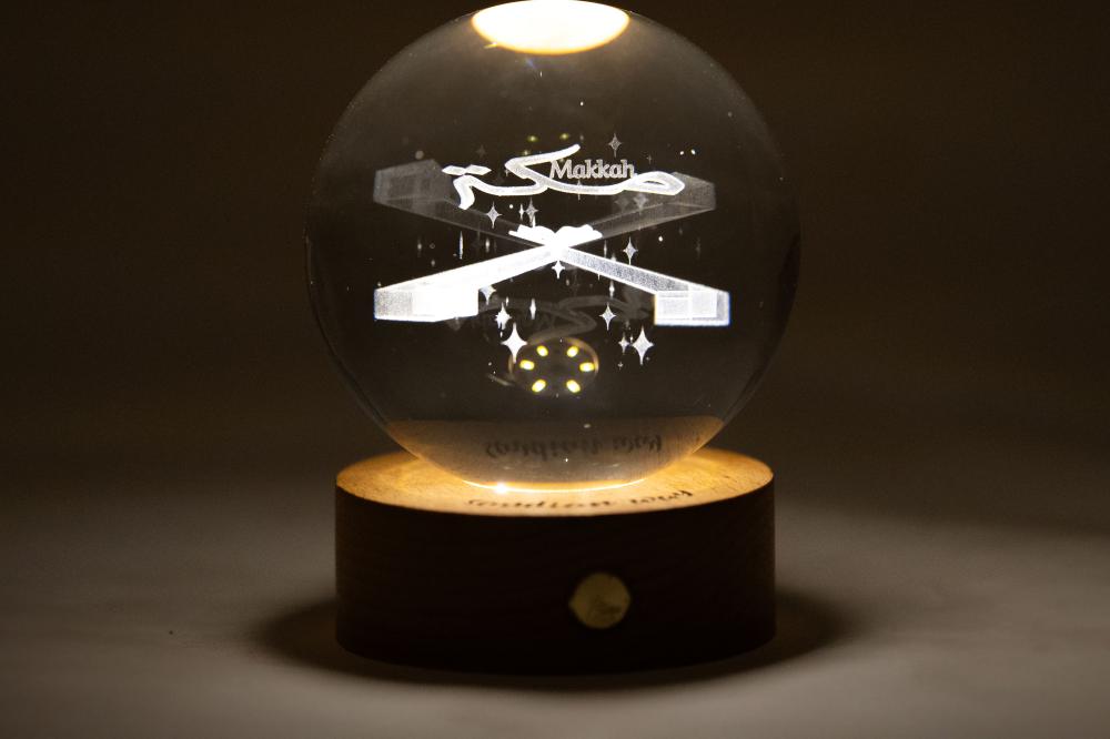 • التحف والكرات المصنوعة من الكريستال، وهي واحدة من أرقى المنتجات التي يوفرها المتجر، وتتميز هذه الكرات بتصميم راقي ومميز يجسد الحرم المكي في إشارة إلى الإعتزاز بالأماكن المقدسة والتأكيد على التمسك بالشعائر الدينية، والترغيب في زيارة الحرم المكي. وهذه الكرات تتمتع بنظام إضاءة مميز يعمل عن طريق الشحن ولن تحتاج لاستخدام البطاريات التي تحتاج لتغييرها كل فترة، كما إنها مزودة بأزرار للفتح والإغلاق، وهي سهلة الاستخدام ويمكن حملها ونقلها بسهولة لأي غرفة فهي خفيفة الوزن وتناسب كل الديكورات والألوان بالمنزل وتضيف له لمسة فخامة ورقي وتشعرك بأجواء روحانية لا مثيل لها.كما إنها مزودة بقاعدة خشبية قوية ومتينة تدعم استقرارها على الأسطح.