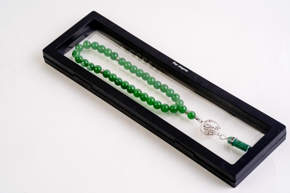 سبحة حجر الافنتورين الأخضر، أجمل هدية تذكارية تعينك على الذكر والتسبيح، وتذكرك بلحظات لا تنسى بالحرم المكي والمدينة المنورة، يوفرها لك متجر الطريقة السعودية بأعلى جودة وأقل سعر.